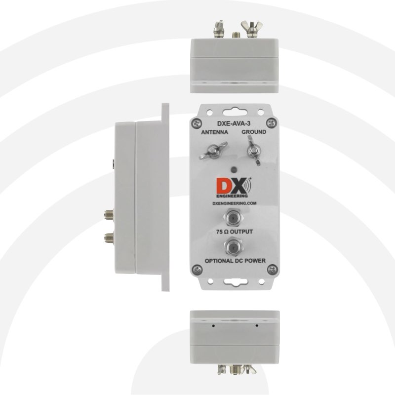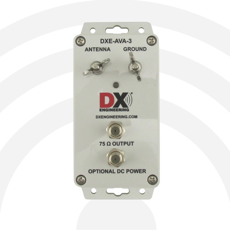 The AVA-3 is a wideband active matching unit that buffers a physically short receive element and transforms it to a 75 Ω feedline, enabling exceptionally quiet reception from VLF through HF. It’s the core amplifier used in DXE’s Receive Short Element Active Verticals (RSEAV).